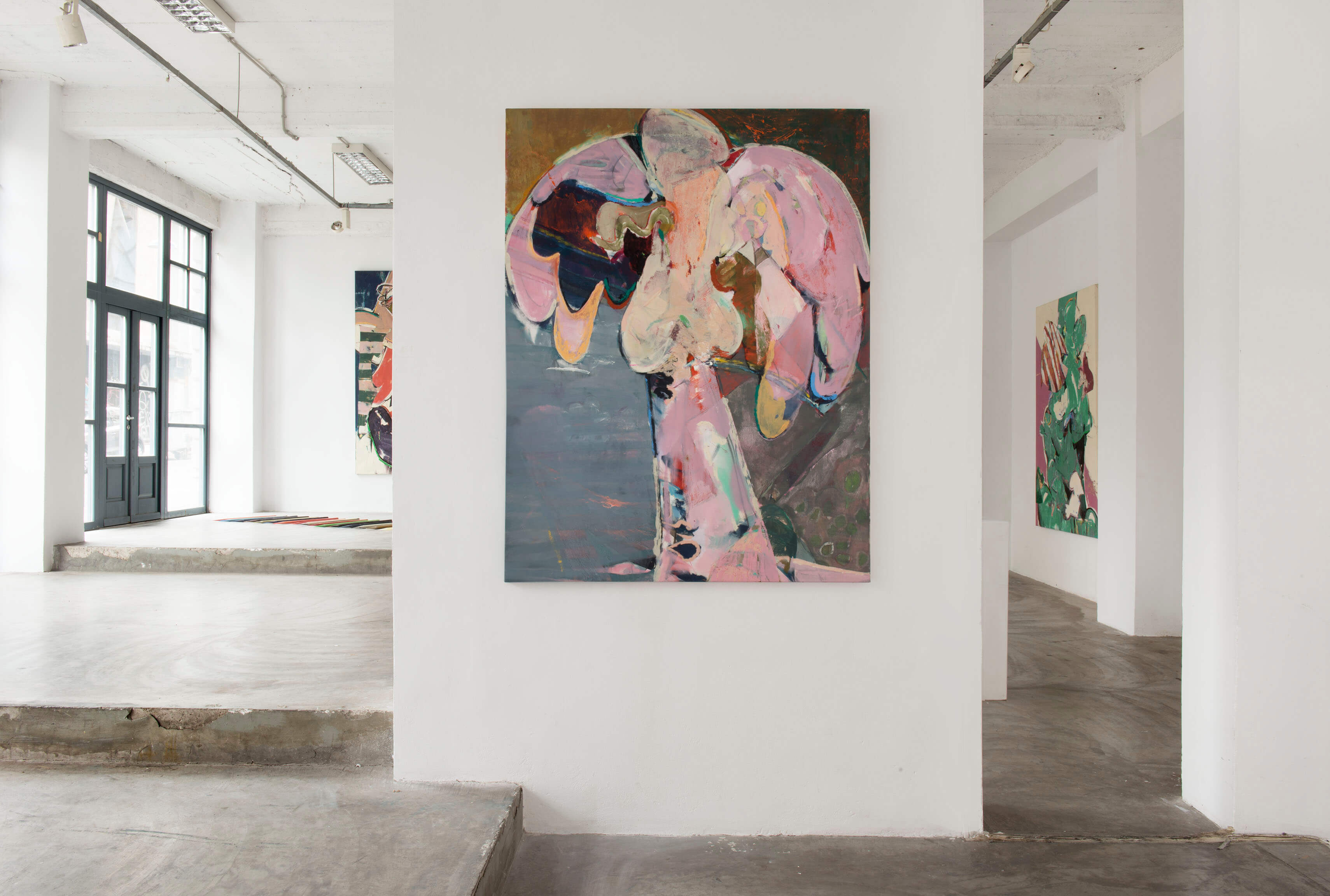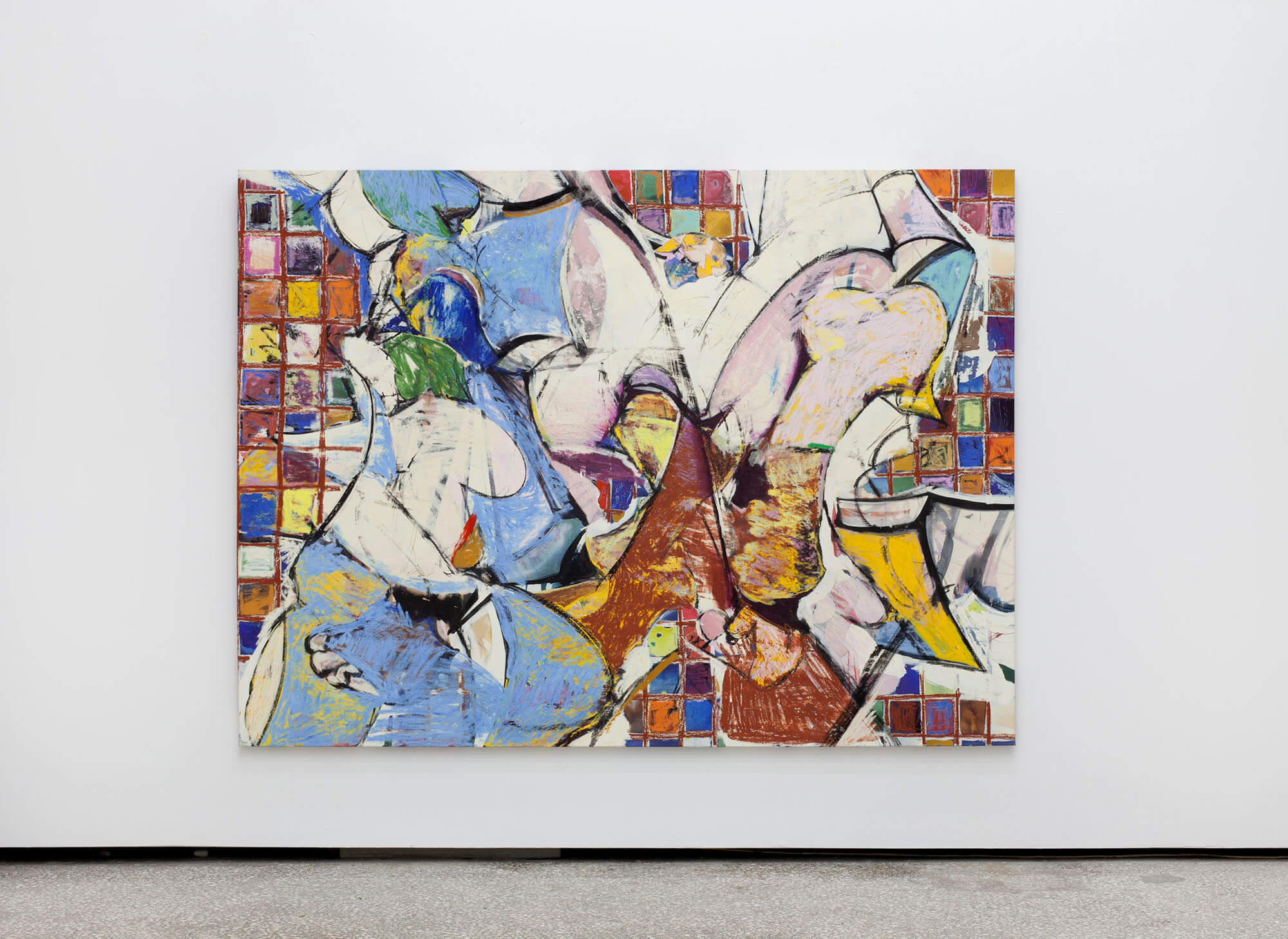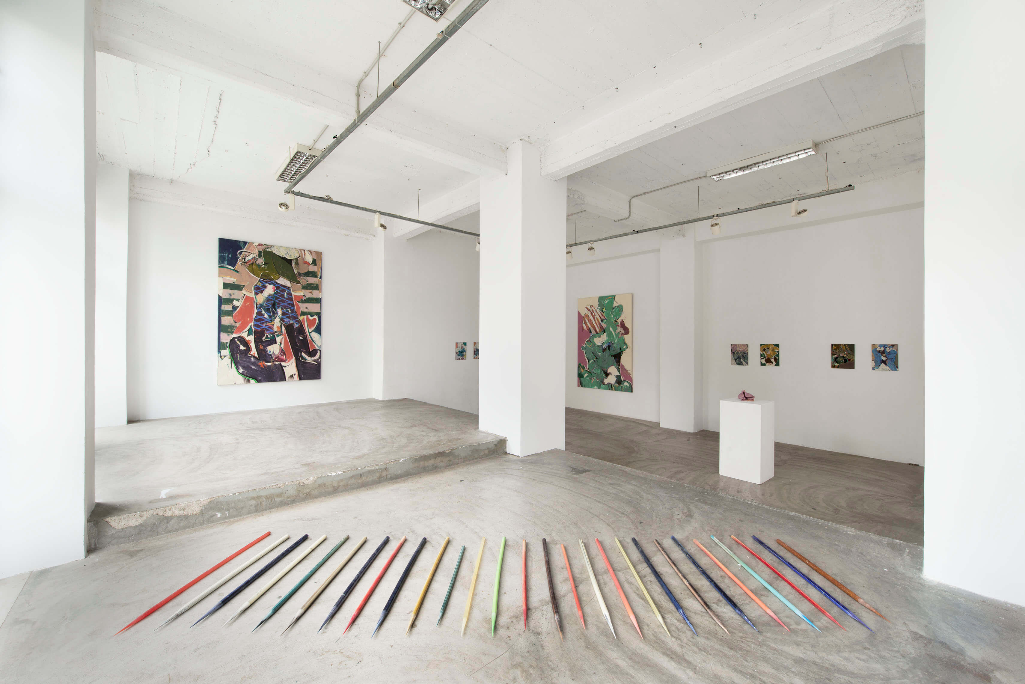 Smashing Games W1 | crayon, oil on canvas 160x240cm wall installation: gouache on paper 400x700cm