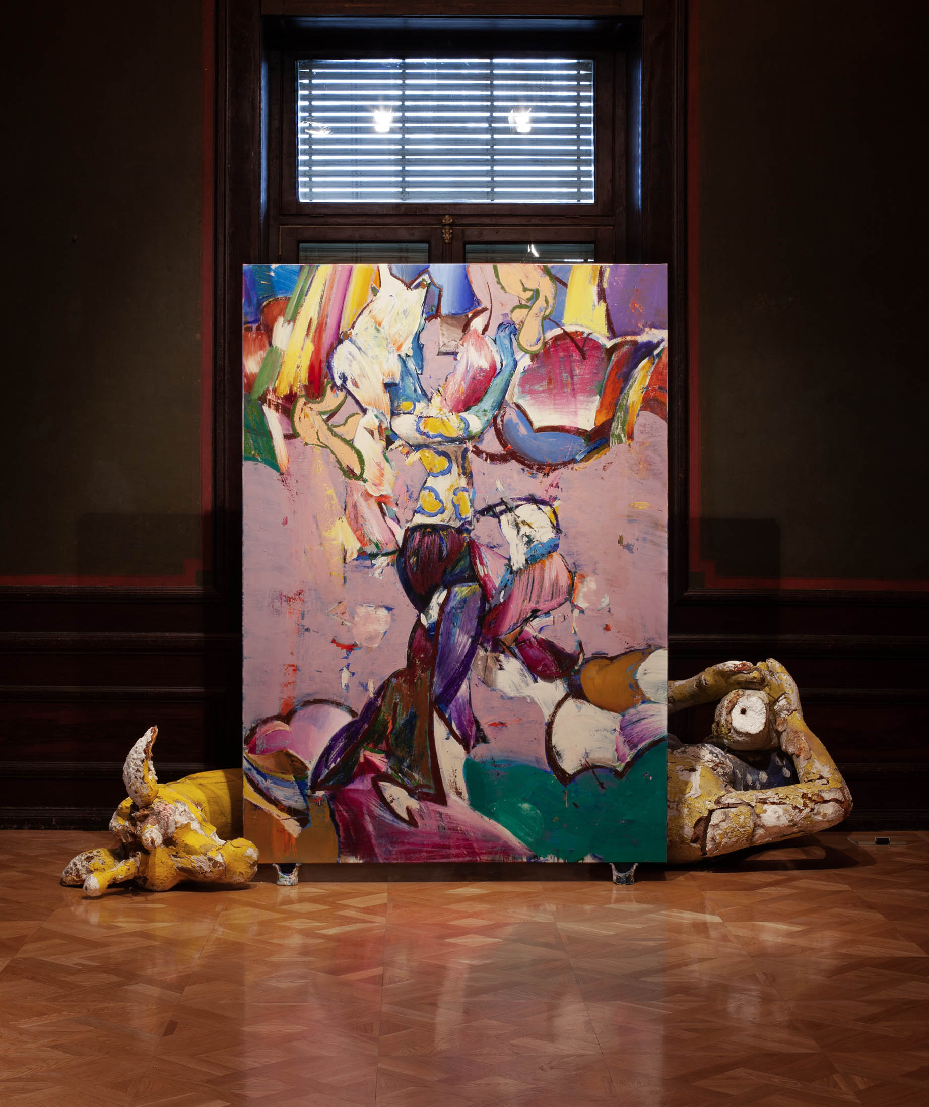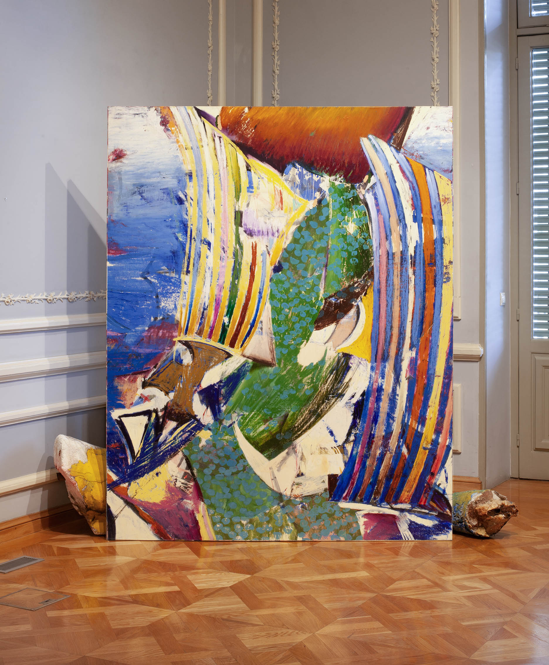 Learning Purposelessness | oil & crayon on canvas 170x240cm, studio geodes, carnival leftovers